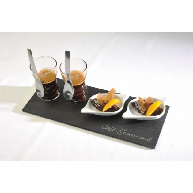 Pour vos cafés gourmands en duo, LeBrun vous propose cet ensemble composé d’une ardoise gravée au laser, de 2 verres, de 2 porcelaines Prodesign ovales et de 2 cuillères à crochet Atoll.