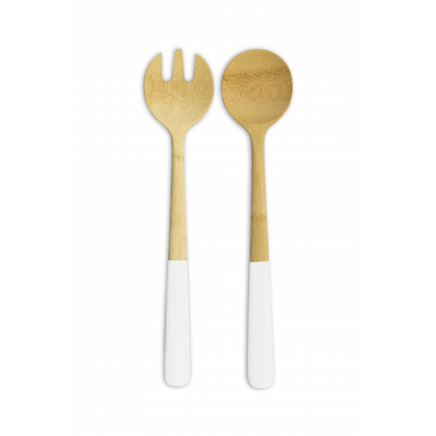 Chaque couvert à salade est fabriqué en bambou massif, avec le détail du manche de couleur blanche pour ajouter une touche élégante. Vous trouverez une fourchette et une cuillère à salade pour servir vos salades, mais aussi vos légumes ou tout autre préparation dans votre saladier, puisque les couverts à salade Pebbly s’utilisent avec les aliments froids et chauds.