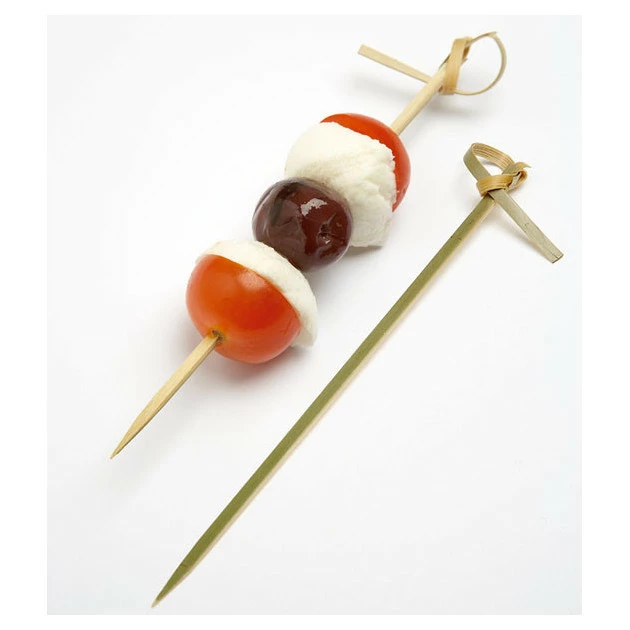 Pique à forme plate évitant aux produits de tourner. Pique Bambou idéales pour mise en bouche et verrines.