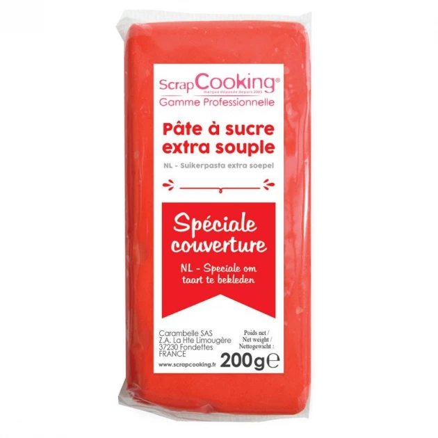 Découvrez cette Pâte à Sucre Rouge Scrapcooking sans gluten, spécialement conçue pour la couverture de gâteau. Extrêmement souple, la Pâte à Sucre Spéciale Couverture s’étalera facilement et sera bien nette au niveau de l’arrête de votre gâteau.