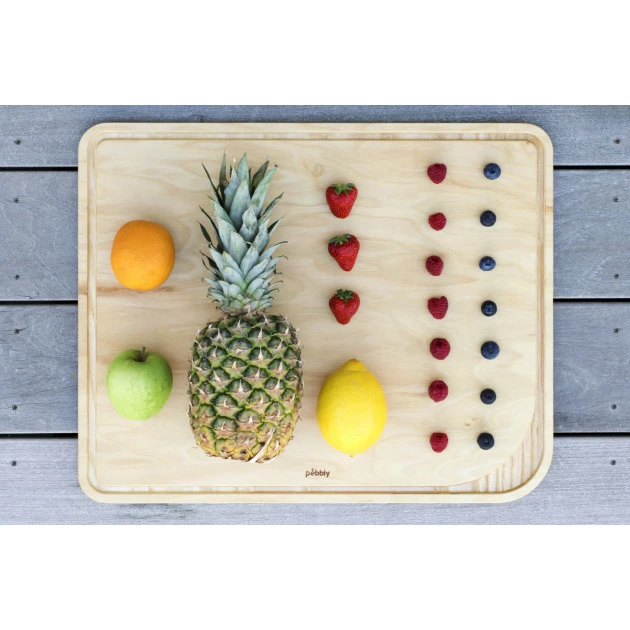 Solide, esthétique et multifonction, la planche cuisine Pebbly est fabriquée en France, à base de frêne blanc certifié, issu d’une gestion forestière durable. Que ce soit pour ciseler, émincer, trancher ou tailler, la planche à découper en bois va rapidement devenir un ustensile pour la découpe indispensable dans votre cuisine. La planche en bois alimentaire possède une face avec une rigole et un puits à jus pour la découpe de viandes, fruits ou légumes. La seconde face de la grande planche à découper est lisse, idéale pour la découpe des aliments secs, mais aussi pour la présentation et le service à table pour un moment convivial.