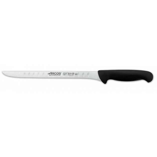 Comme tous les couteaux Arcos, le couteau à jambon possède une lame en acier inoxydable Nitrum garantissant un pouvoir de coupe dans le temps sans pareil. La poignée du couteau à jambon, en polyéthylène, est ergonomique, antidérapante et elle résiste aux chocs et aux températures élevées (120-130°C). Avec une lame souple, ce couteau à jambon Arcos permet d’accompagner la forme de votre jambon pour obtenir des tranches extra-fines, digne des meilleurs cortadores d’Espagne !