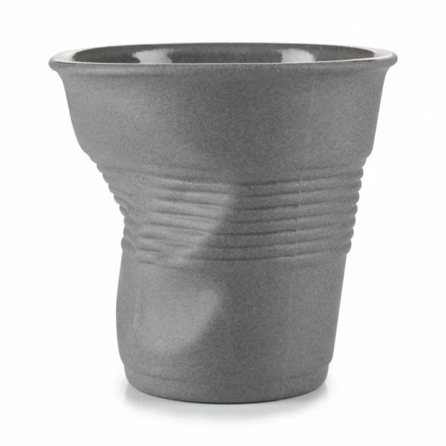 Un expresso bien serré et bien présenté ? Compagnon indéfectible de bien des machines à café, le gobelet froissé Revol est fabriqué en France de façon artisanale. Apprécié des particuliers et des professionnels, ce gobelet gris fera ressortir la délicieuse teinte de votre café. La porcelaine dont il est composé est naturelle et de qualité exceptionnelle. Pas besoin d’une anse, le gobelet à l’origine possède un aspect froissé qui assure une bonne prise en main en plus d’être visuellement intéressant.