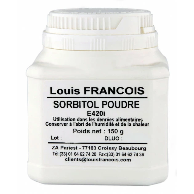 Le petit conditionnement du sorbitol en poudre Louis François en 150 g se révèle très pratique pour les particuliers comme pour les professionnels.