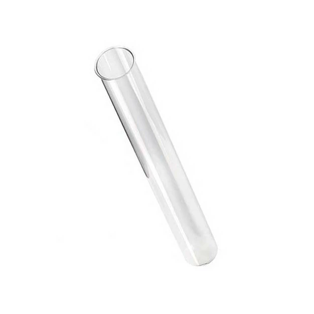 Lot de 6 tubes à essai en verre. Fond rond, bord droit.