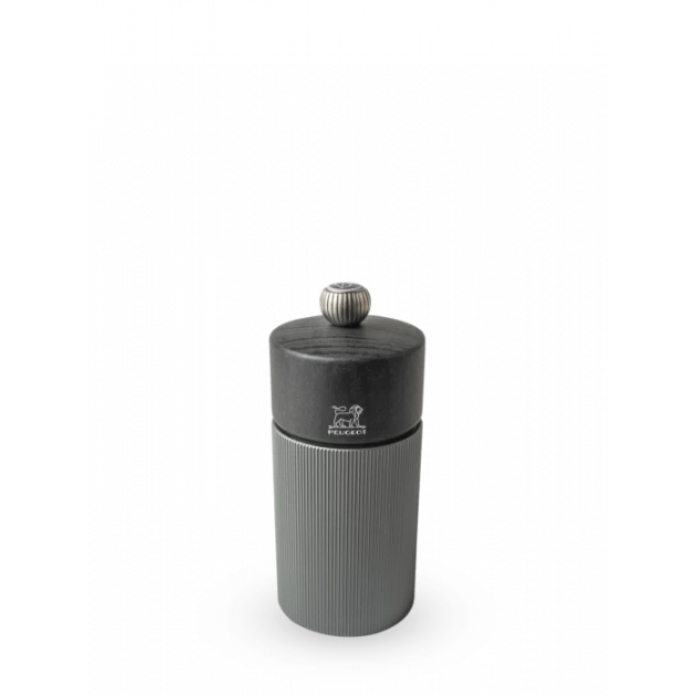 Avec ses stries irisées graphiques et sa combinaison de matières, entre son corps en aluminium et son chapeau en bois de hêtre issu de forêt françaises durables, le moulin à sel Line sera parfait pour habiller vos tables. La teinte carbone de la salière pourra se marier avec celle du moulin à poivre 12 cm aluminium de la même gamme. Pour une association monochrome, le moulin à sel Peugeot carbone existe également en poivrier.